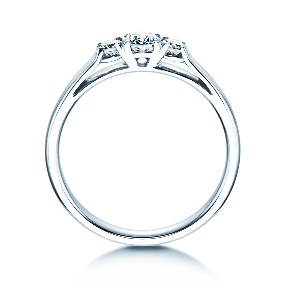 Das Modell 3 Stones präsentiert drei funkelnd leuchtende Diamanten eingebettet in modernem und innovativem Ringdesign. Dieses Design vereint zwei entscheidende Vorteile: 1. Die Diamanten sind offen gefasst und entfalten so ein besonders intensives Leuchten, 2. die sich direkt aus der Ringschiene entwickelnden äußeren Elemente der Fassung schützen die Diamanten und geben ihnen sicheren Halt. Die drei Diamanten symbolisieren drei Zeitebenen – vergangene, jetzige und zukünftige Liebe – und verbinden sich so im Modell 3 Stones zu einem ausdrucksstarken und romantischen Liebesbeweis.