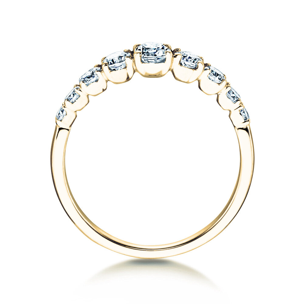 Dieser besonders elegante Ring ist mit neun funkelnden Diamanten von unterschiedlicher Größe besetzt und ist ein Prachtstück an jedem Finger. Er lässt sich ideal mit weiteren Schmuckstücken kombinieren und ist zudem zeitlos modern.