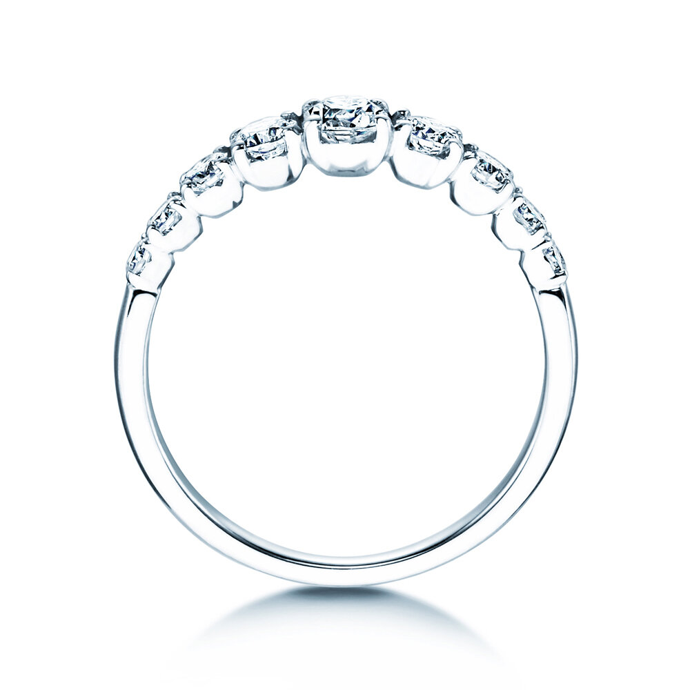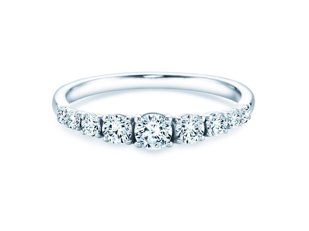 Dieser besonders elegante Ring ist mit neun funkelnden Diamanten von unterschiedlicher Größe besetzt und ist ein Prachtstück an jedem Finger. Er lässt sich ideal mit weiteren Schmuckstücken kombinieren und ist zudem zeitlos modern.