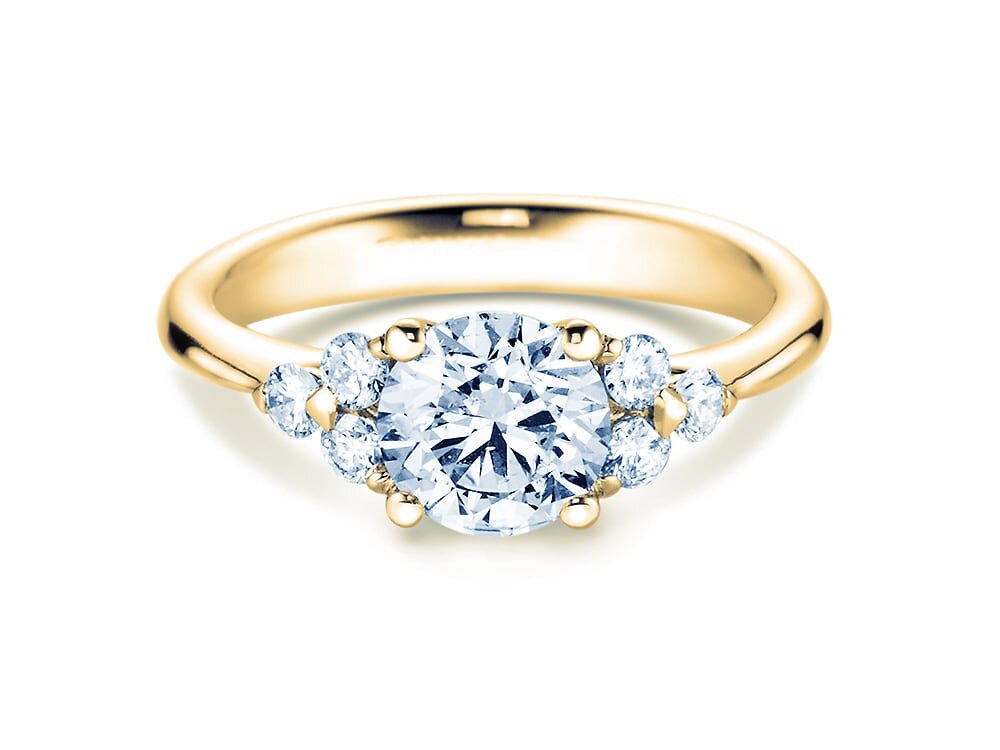 Der Solitärring Vivid Diamond verbindet die Leuchtkraft von 7 Diamanten mit femininer Ausstrahlung. Die glänzend polierte Ringschiene mündet in eine prachtvoll verzierte Fassung. Zu beiden Seiten flankieren drei kleine Diamanten den imposanten Hauptstein. Sie erhalten den Solitärring Vivid aus schlichtem Silber, modernem Weißgold oder exklusivem Platin.