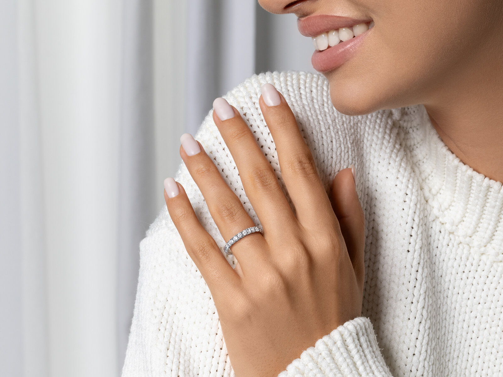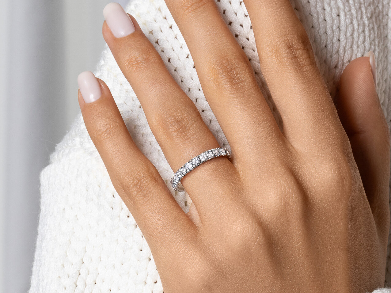 Einfach schick: der Eternityring Dusk schöpft seine Strahlkraft aus dem minimalistischen Design. Die moderne Fassung begeistert und die Diamanten funkeln am Finger der Trägerin um die Wette. So schön kann einfach sein.