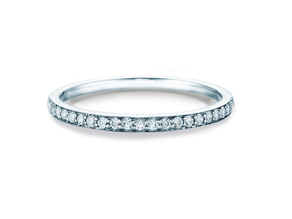 Ein leuchtendes Band aus Diamanten ziert die gesamte obere Hälfte dieses schlichten Alliance-Rings. Mit dem strahlenden Funkeln der Diamanten und seinem zeitlosen Design lässt sich dieser Alliance-Ring perfekt mit anderen Ringen kombinieren.