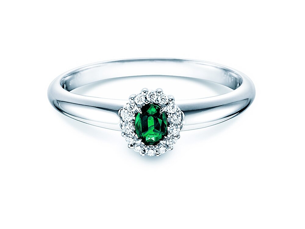 9K Weißgold mit Smaragd 0,25ct und Diamanten 0,06ct