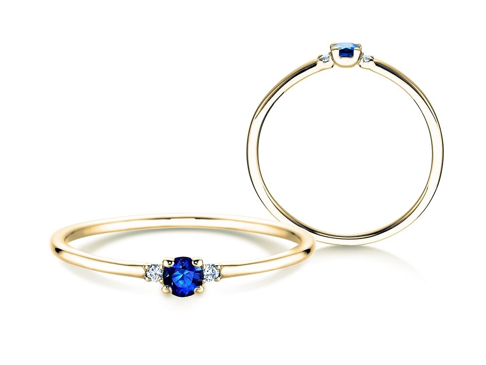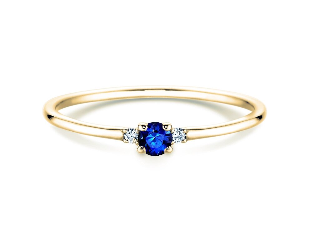 14K Gelbgold mit Saphir 0,08ct und Diamanten 0,02ct