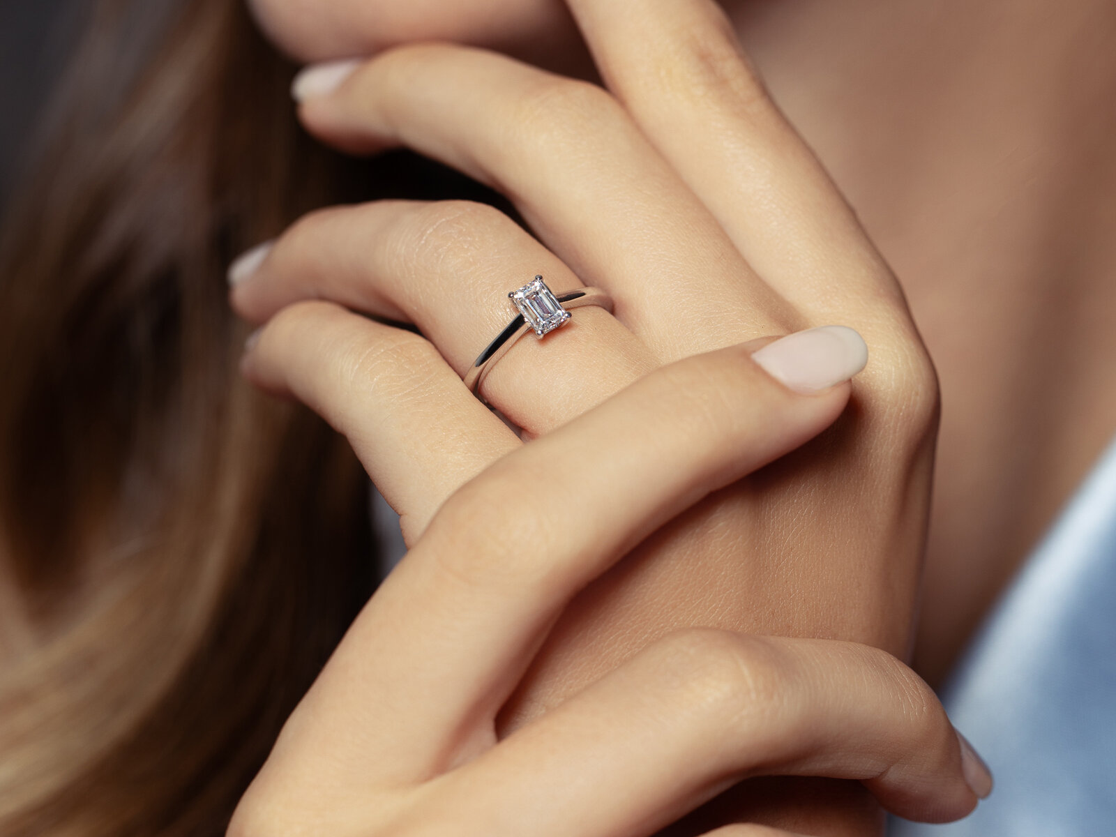 Der achteckige Emerald-Schliff ist ein sogenannter „Step cut“. Dieser spezielle Schliff war früher als klassische Edelsteinschliff für den Smaragd (engl. Emerald) bekannt und wird in den letzten Jahren auch bei Labordiamanten immer beliebter.