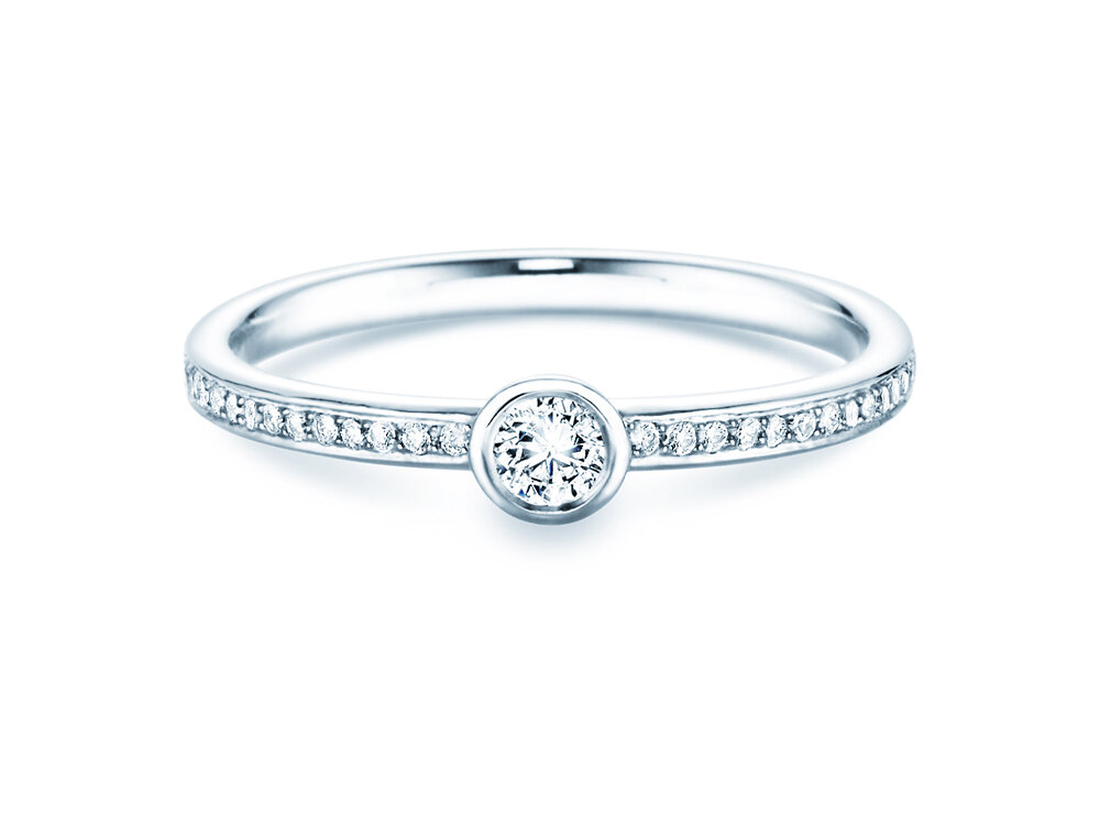 Der Solitärring Eternal Pavé ergänzt das beliebte, klassische Modell Eternal um eine exklusive Variante mit der besonderen diamantenbesetzten Ringschiene.