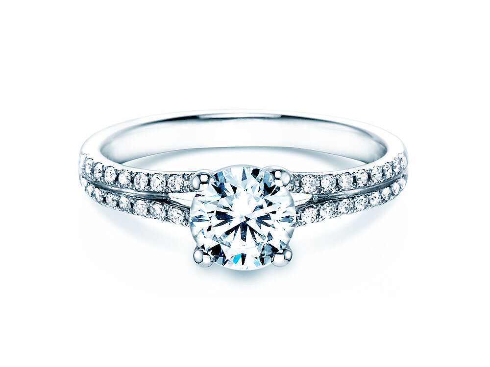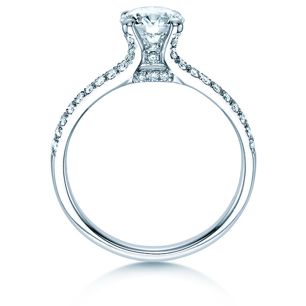 Gekrönt wird die brillantbesetzte Ringschiene durch einen einkarätigen Brillanten. Auffällig ist ebenso die detailverliebte Verarbeitung, die man wunderschön in der Profilbetrachtung sehen kann. Ein Ring, der für eine bezaubernde Frau geschaffen ist.