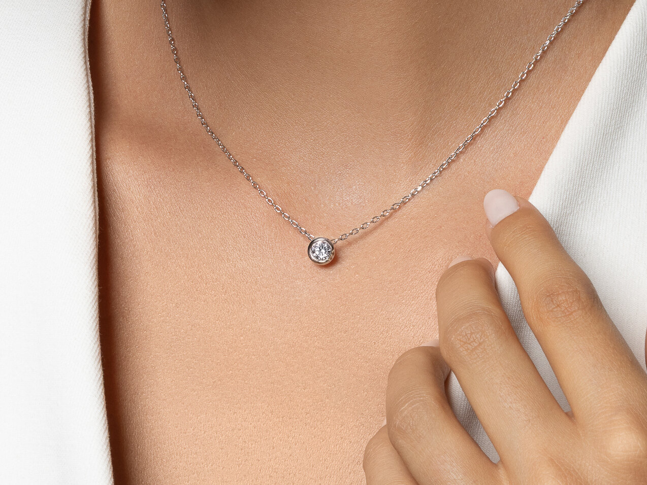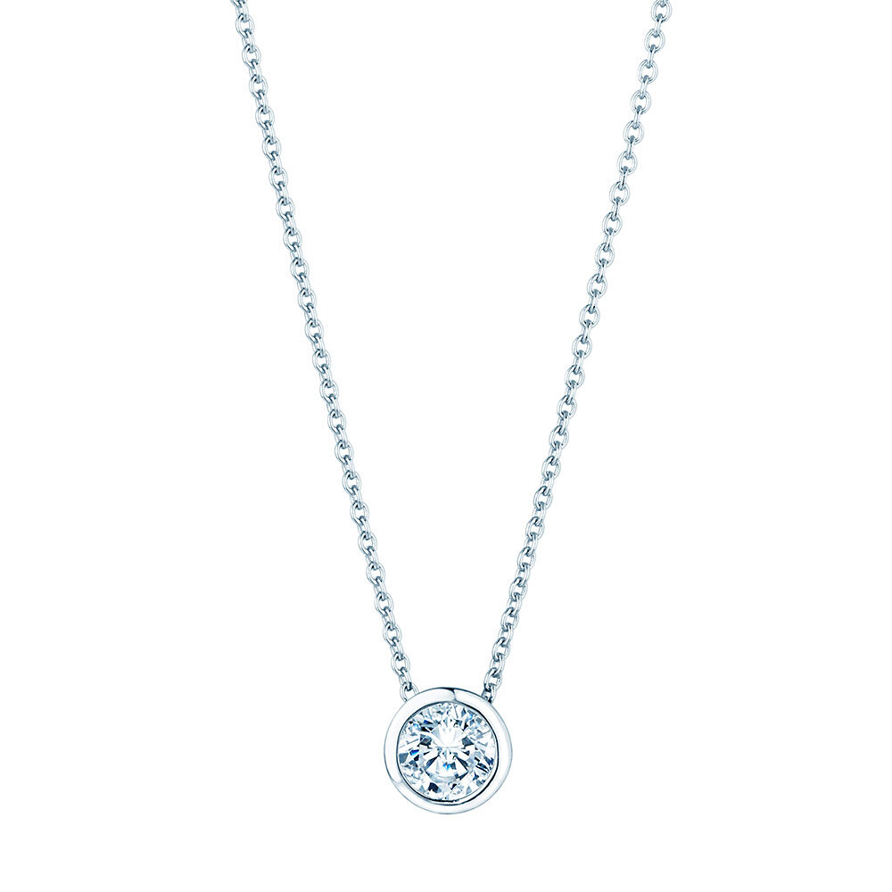Ein Klassiker, der Anhänger Eternal mit einer Zargenfassung. Der Anhänger ist zeitlos und eignet sich als ideales Geschenk. Wählen Sie zwischen 18k Gold und Platin und einer Diamantgröße zwischen 0,15-1,00 Karat.