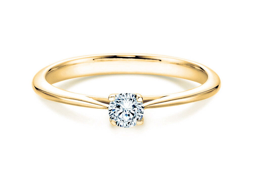 Eine kunstvoll gestaltete Fassung hebt den Diamanten elegant über die schlicht gearbeitete Ringschiene hinaus. So wird das Maximum des einfallenden Lichts reflektiert und der Diamant kann sein magisches Funkeln optimal entfalten. Der Auftritt dieses Rings ist angenehm zurückhaltend und zugleich stilvoll und trendy.
