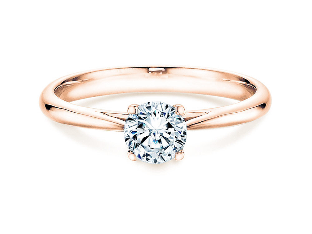 Eine kunstvoll gestaltete Fassung hebt den Diamanten elegant über die schlicht gearbeitete Ringschiene hinaus. So wird das Maximum des einfallenden Lichts reflektiert und der Diamant kann sein magisches Funkeln optimal entfalten. Der Auftritt dieses Rings ist angenehm zurückhaltend und zugleich stilvoll und trendy.