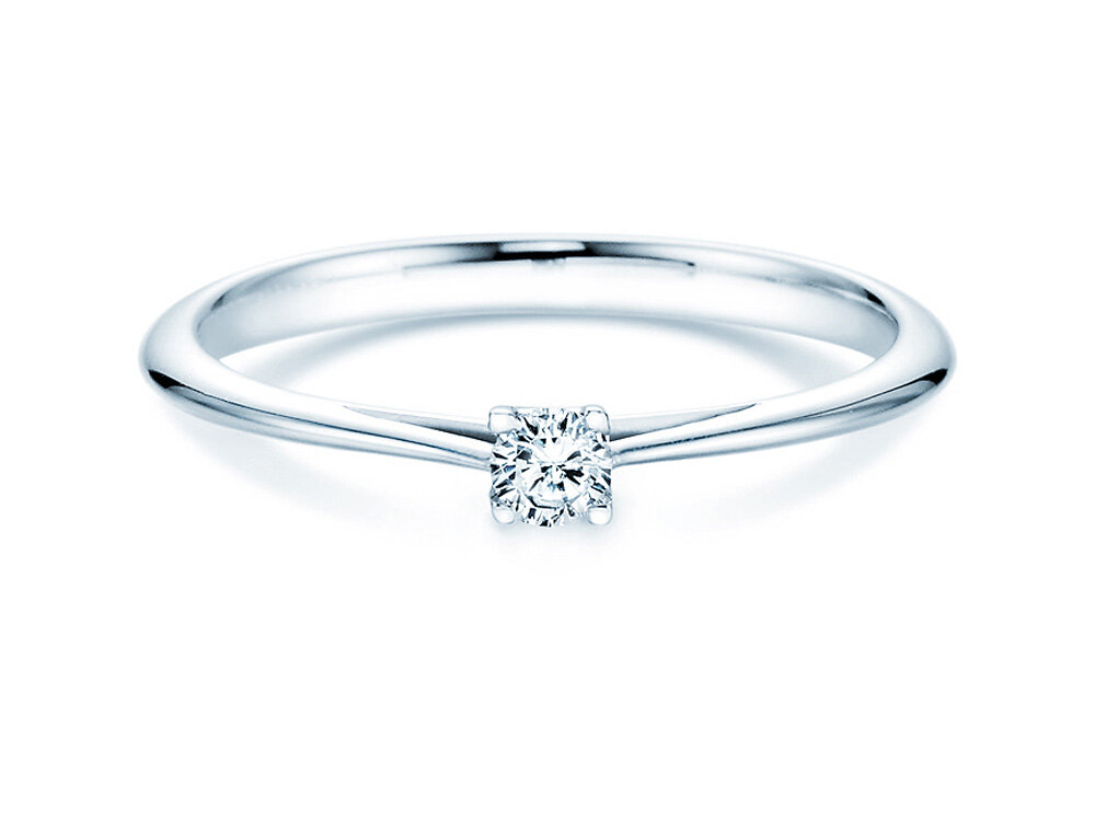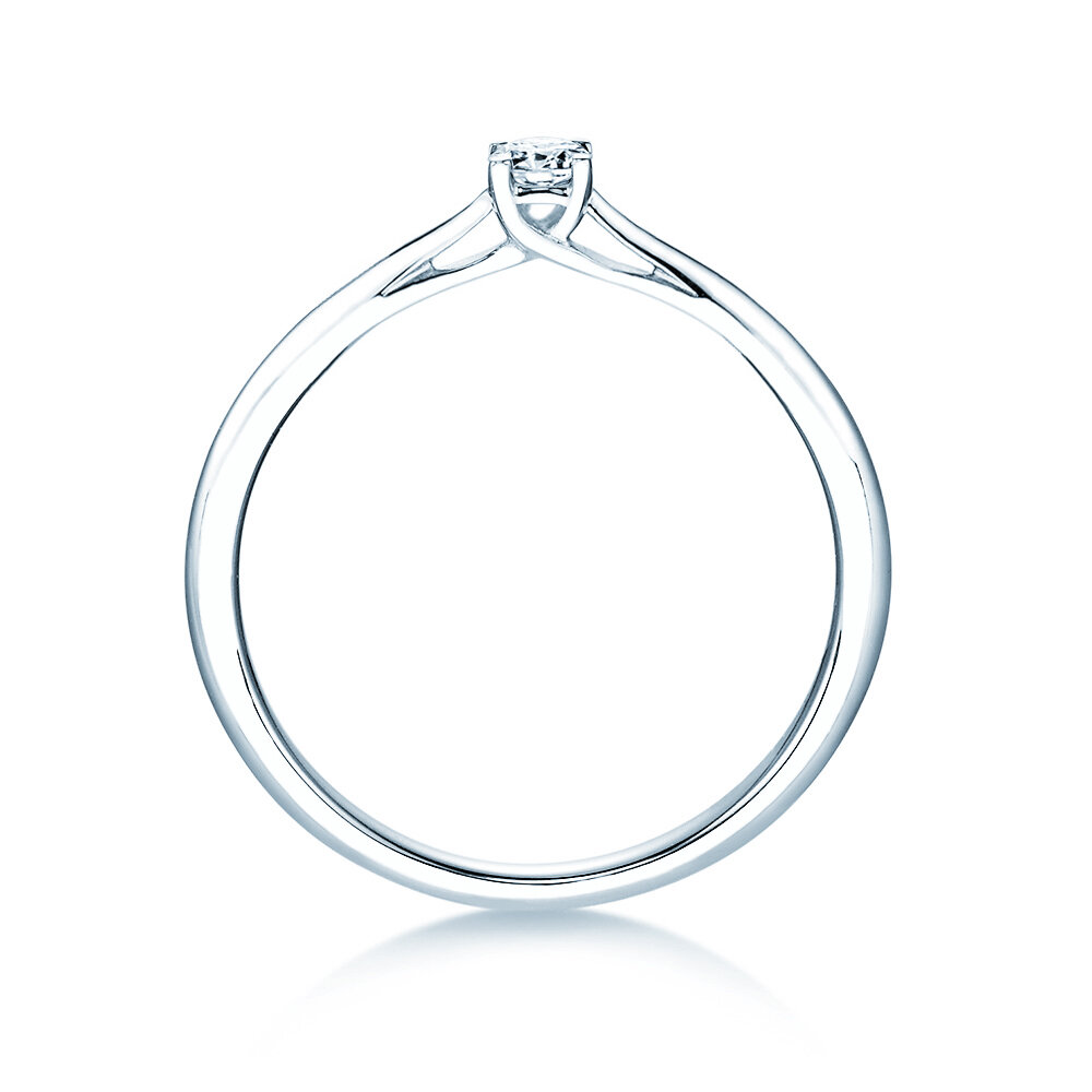 Eine kunstvoll gestaltete Fassung hebt den Diamanten elegant über die schlicht gearbeitete Ringschiene hinaus. So wird das Maximum des einfallenden Lichts reflektiert und der Diamant kann sein magisches Funkeln optimal entfalten. Der Auftritt dieses Rings ist angenehm zurückhaltend und zugleich stilvoll und trendy.