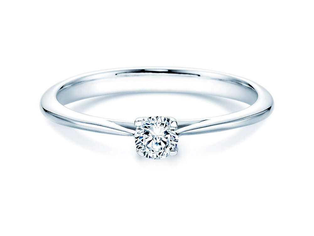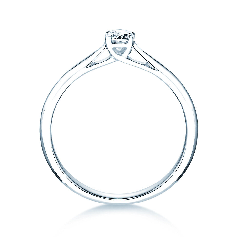 Eine kunstvoll gestaltete Fassung hebt den Diamanten elegant über die schlicht gearbeitete Ringschiene hinaus. So wird das Maximum des einfallenden Lichts reflektiert und der Diamant kann sein magisches Funkeln optimal entfalten. Der Auftritt dieses Rings ist angenehm zurückhaltend und zugleich stilvoll und trendy.