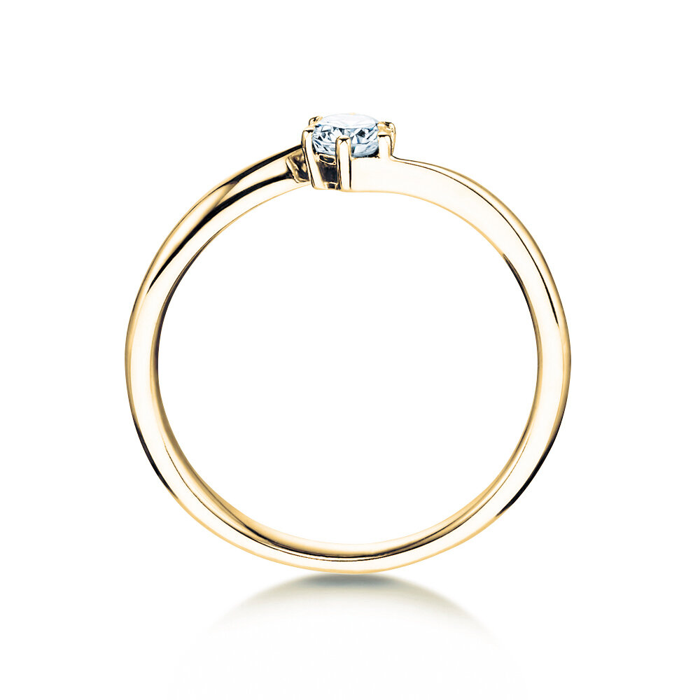 Sanft liebkost die Ringschiene des Diamantrings Devotion den edlen Diamanten. Die leichte Drehung verleiht diesem Solitärring eine künstlerische Anmutung. Einzigartiges Design, das in kräftigem Gelbgold erstrahlt.