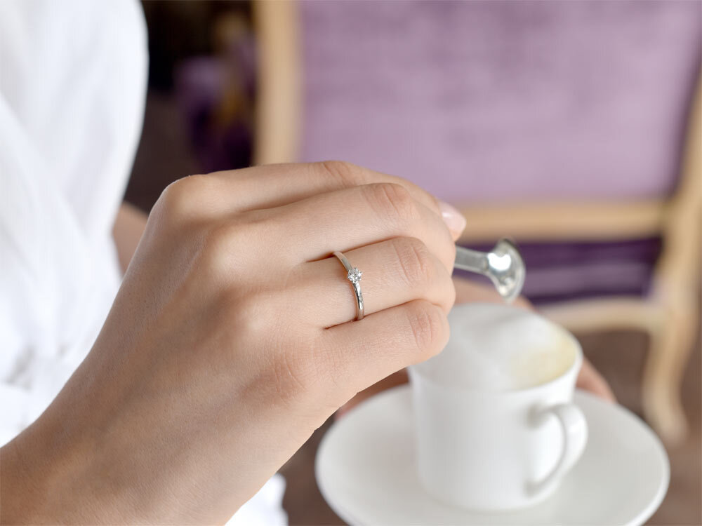 2. Weichheit: Silber ist weicher als andere Edelmetalle. Es ist daher anfälliger für Kratzer und Dellen, die Fassung von Silberringen verbiegt leichter. Dass Silber weniger hart ist, macht sich vor allem bei täglichem Tragen bemerkbar.