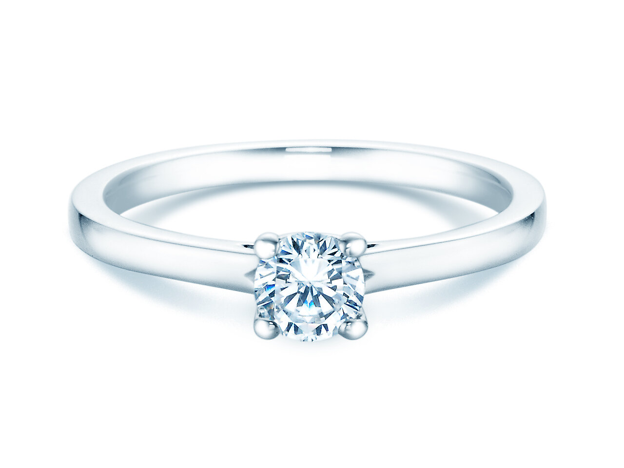 Verlobungsring Romance mit echtem Diamant und vierer Krappenfassung. Das romantische Highlight des Solitärring Romance ist das in die Fassung eingearbeitete Herz.