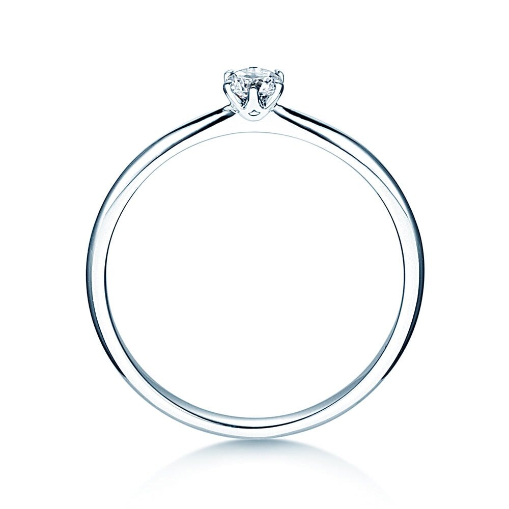 Die klassisch gehaltene Ringschiene des Verlobungsrings Spirit verjüngt sich bis zur tief angesetzten Fassung. Der Diamant ist auf einer Höhe über der Schiene gefasst, die hohe Lichtausbeute und strahlende Reflexe im Diamanten ermöglicht. Eine leicht gewölbte Innenseite macht das Tragen angenehm. Spirit ist ein ausgewogener, eleganter Verlobungsring und eine Ode an die Handwerkskunst.
