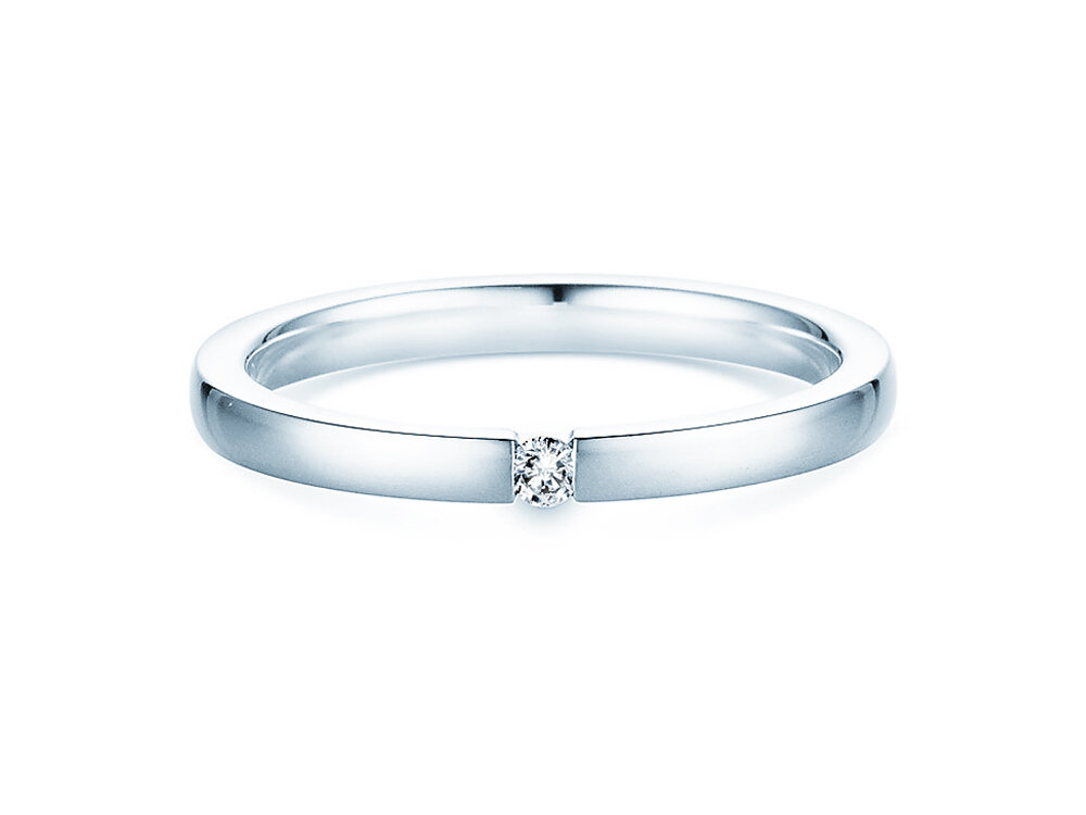 Der Diamant ist in unserem Modell Infinity sicher in die Ringschiene eingespannt. Das helle Silber wirkt modern und lässt den Edelstein erstrahlen. Auch aus edlem Weißgold ist der Spannring Infinity ein Blickfang.