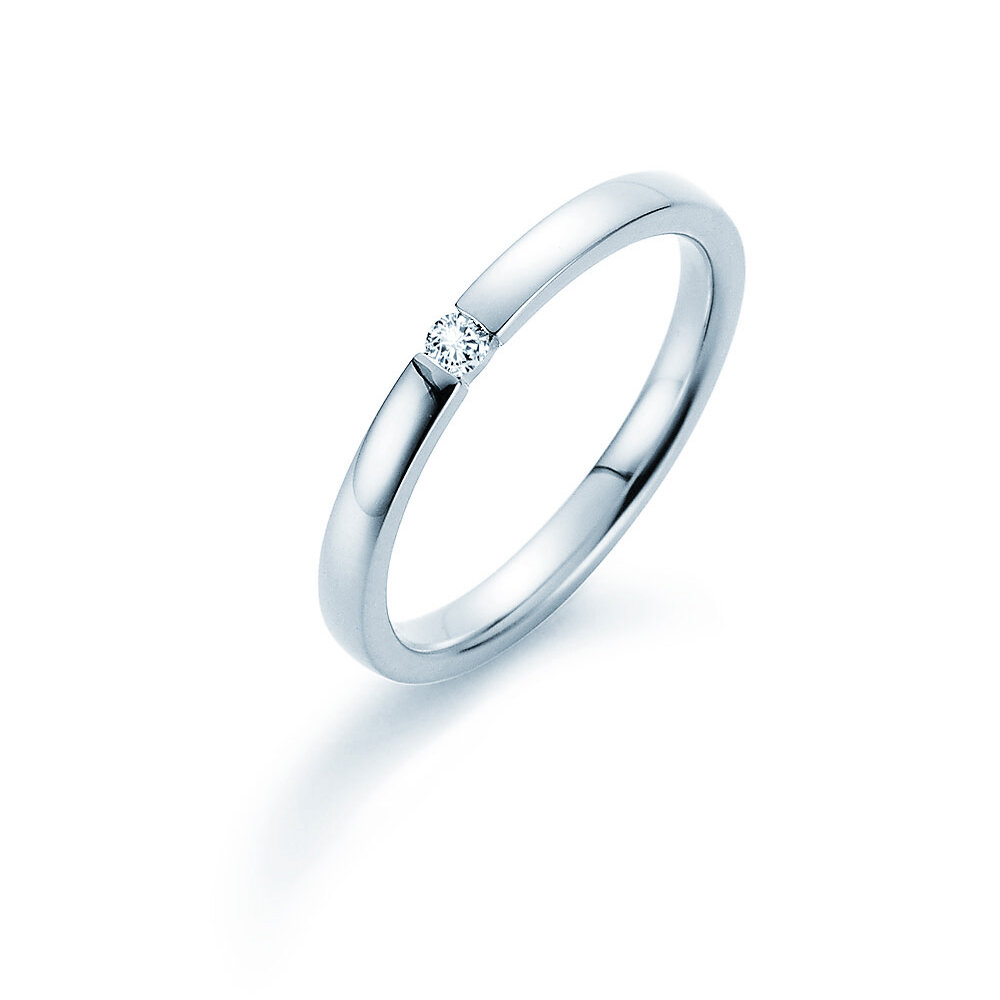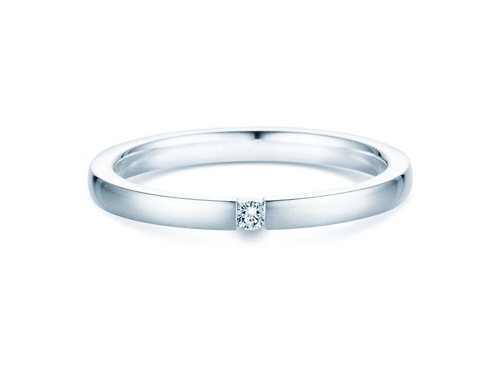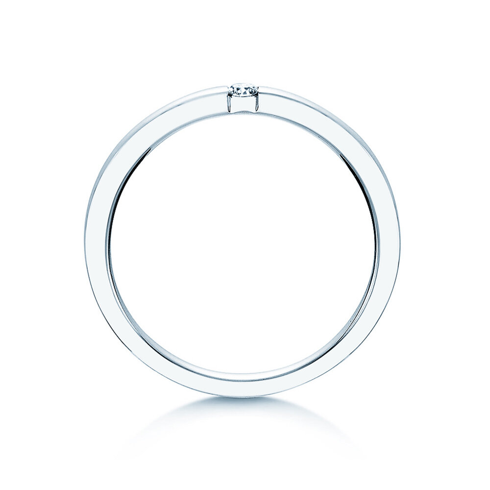 Der Diamant ist in unserem Modell Infinity sicher in die Ringschiene eingespannt. Das helle Silber wirkt modern und lässt den Edelstein erstrahlen. Auch aus edlem Weißgold ist der Spannring Infinity ein Blickfang.